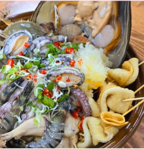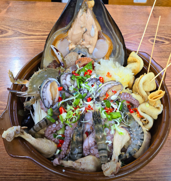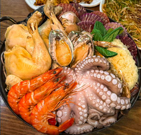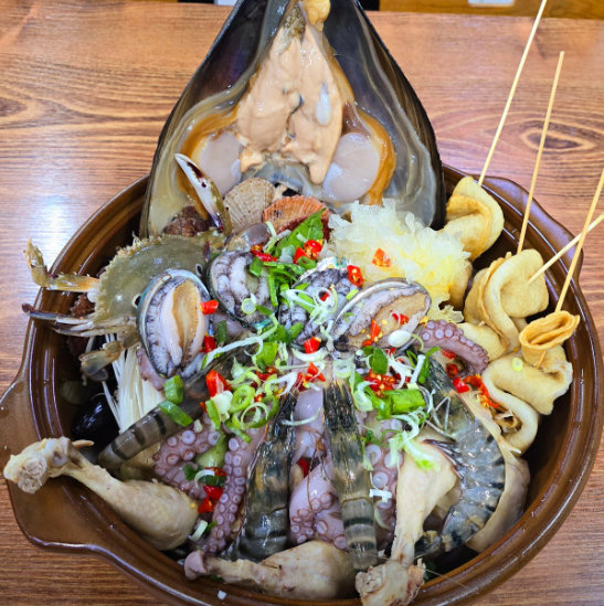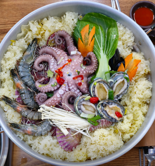 한 그릇에 해산물과 닭고기가 푸짐하게 담겨 있어 가성비가 좋다는 평가를 받습니다. 가족 단위 방문객이나 여행객들에게 인기가 많습니다.